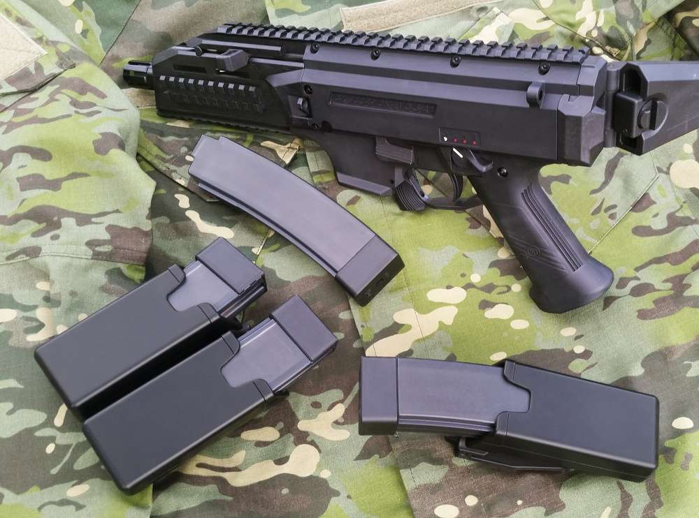 This self-locking universal holder is designated for the carrying of 2 back-up magazines for submachine gun CZ Scorpion EVO and for guns based on GP Stribog line (9×19 Luger).